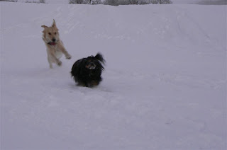 Ennen uutta kameraa onkin, sitten tyydyttävä näihin surkeisiin yrityksiin. Tänään aamulla käytiin pitkästä aikaa koiratreffeillä kingcharlesinspanielin Vilin ja espanjan vesikoiran Diegon kanssa. Kyllähän pojilla oli lystiä!